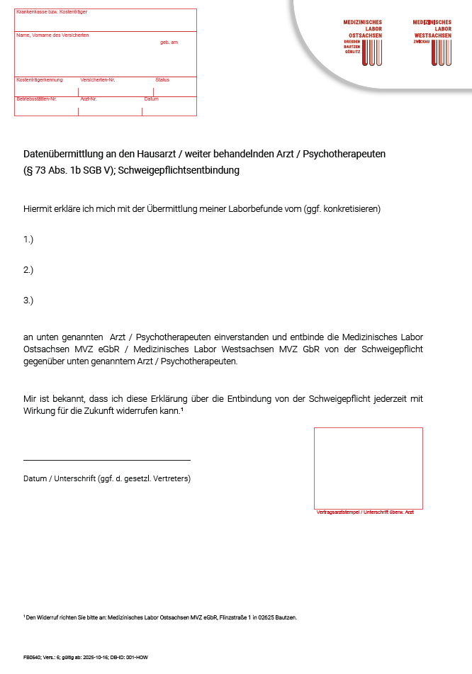 Nachforderungen von Laboruntersuchungen, die ggf. für die abschließende Befundinterpretation notwendig sind, können Sie bei uns über die zentralen Telefon- bzw. Faxnummern der Standorte beauftragen, oder über unser Service-Portal.