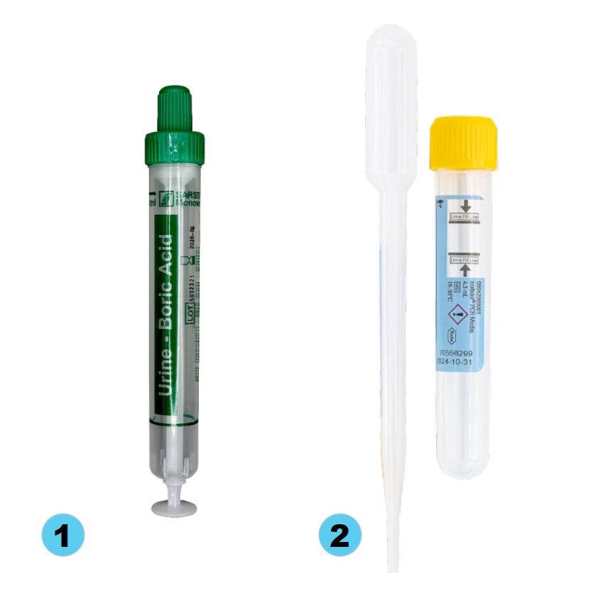 1) Urinröhrchen mit Borsäure-Stabilisator